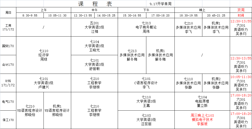 - 2017下半年课程表